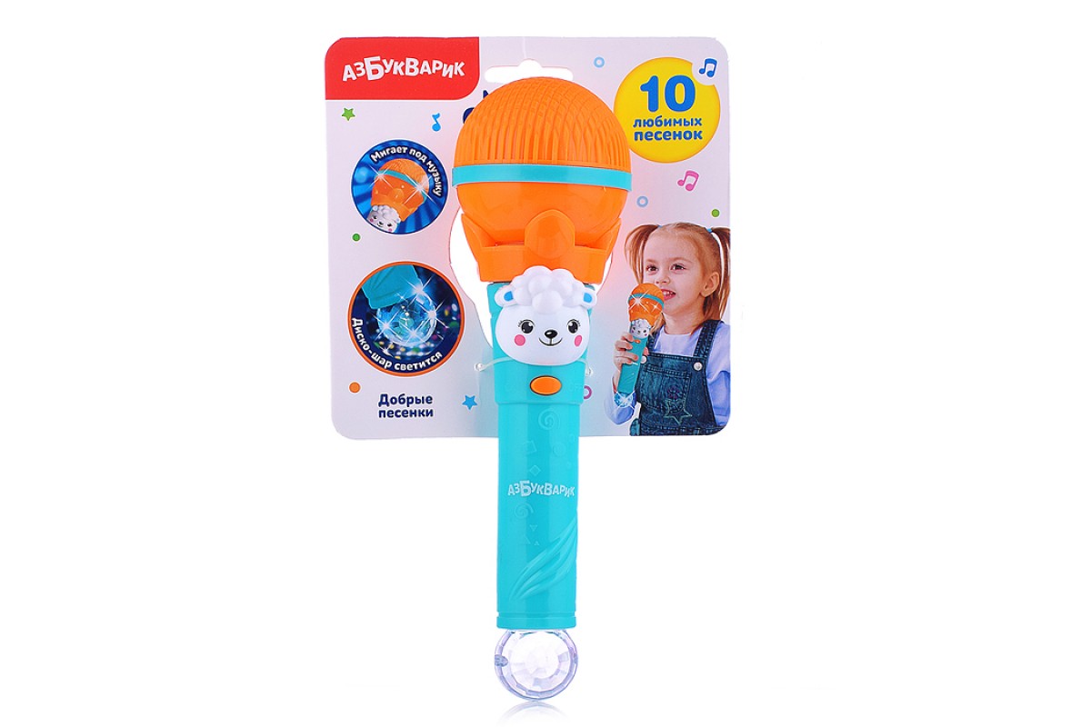 Что нужно для детской зажигательной дискотеки? Конечно, большой микрофон Суперхит с популярными детскими песенками и светомузыкой. Нажимай на кнопочку – слушай 10 песенок из мультиков: