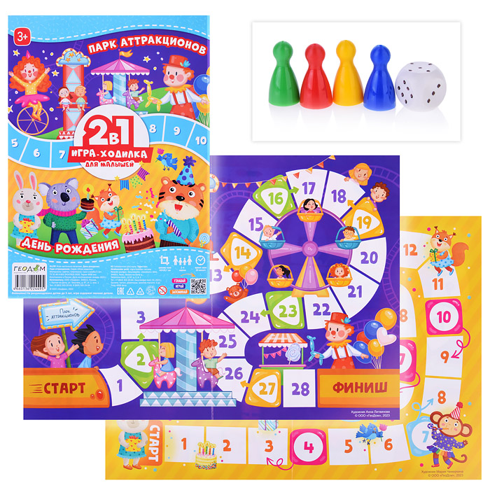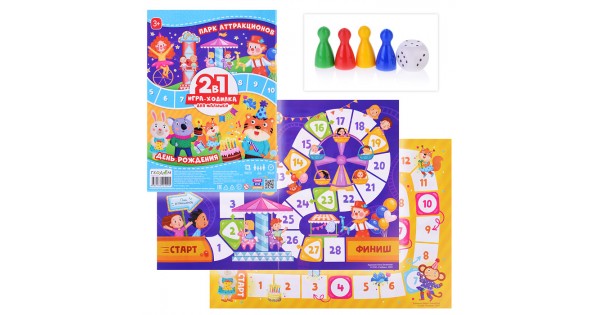 Игра-ходилка с фишками для малышей 2в1. День рождения + Парк аттракционов.