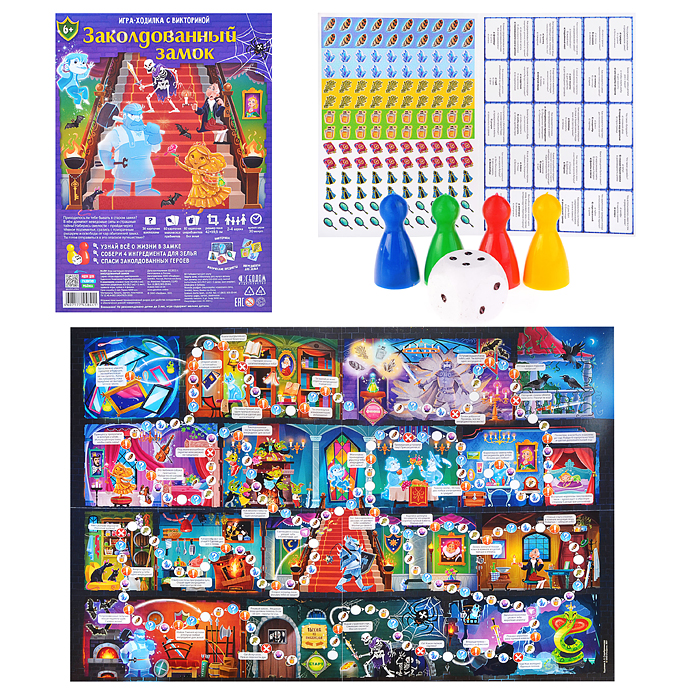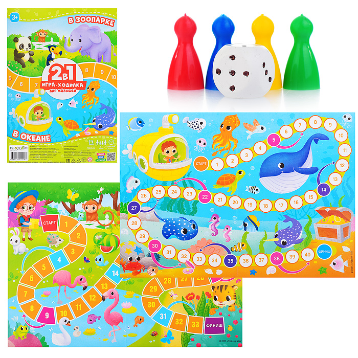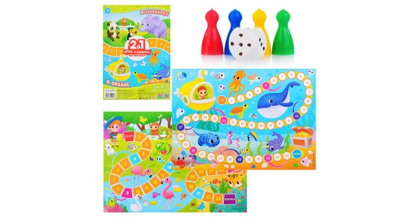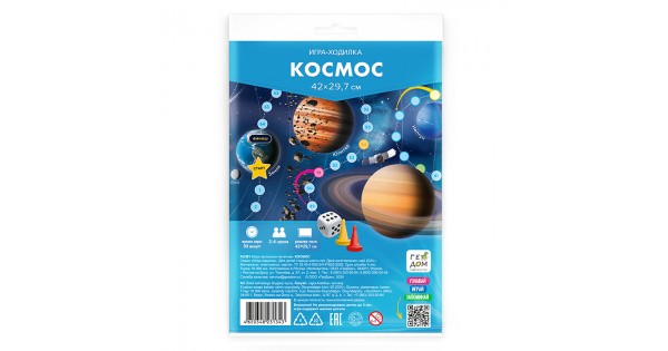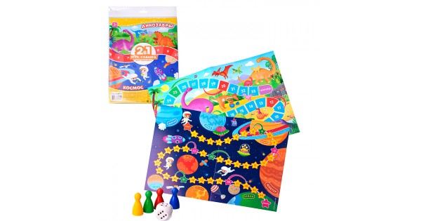 Игра-ходилка с фишками для малышей 2в1. Динозавры+Космос. 42х29,7 см.