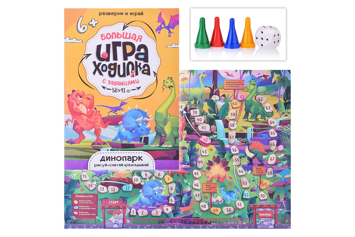 Большая игра-ходилка с заданиями. Динопарк. 58х41 см.