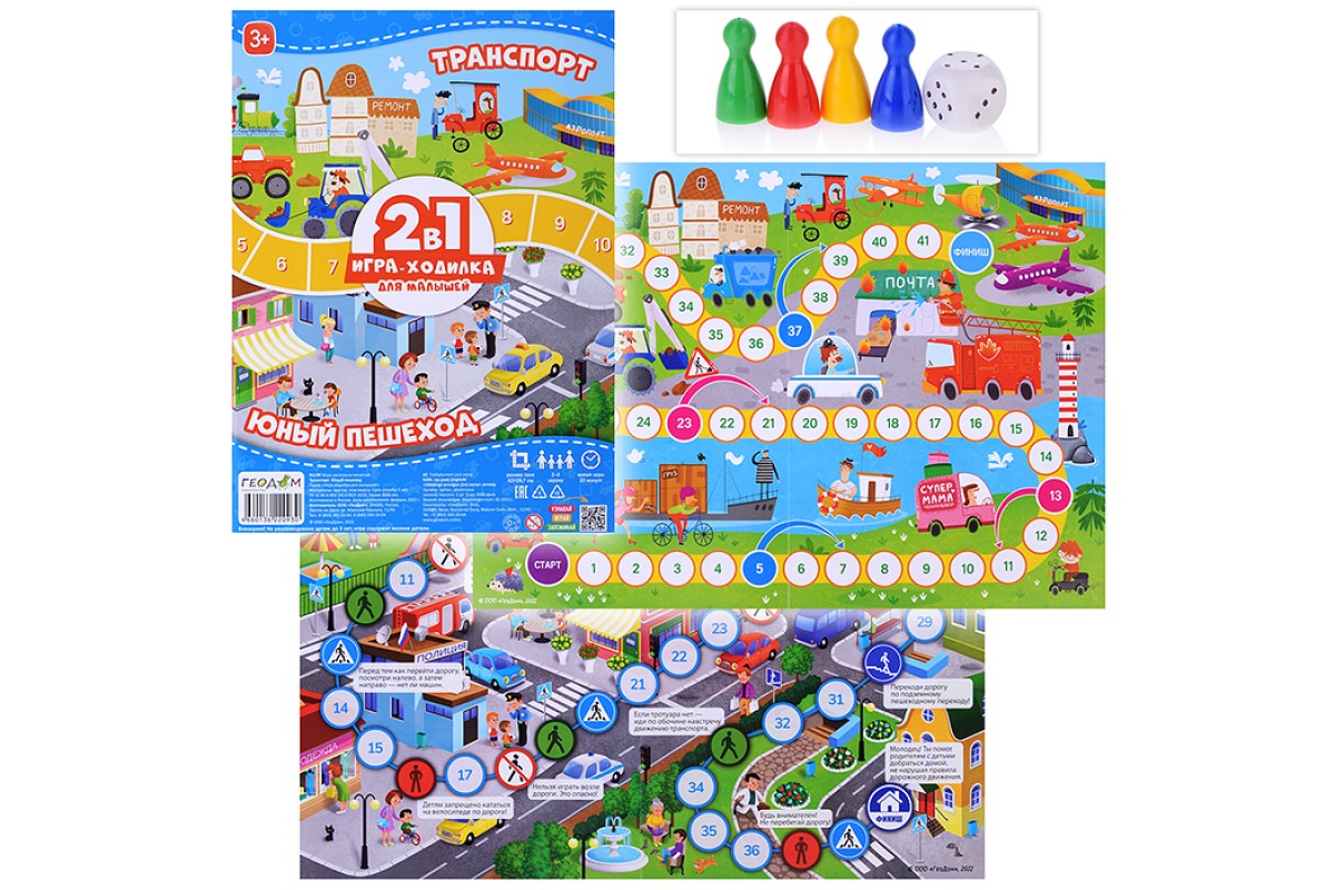 Игра-ходилка с фишками для малышей 2в1. Транспорт+Юный пешеход.