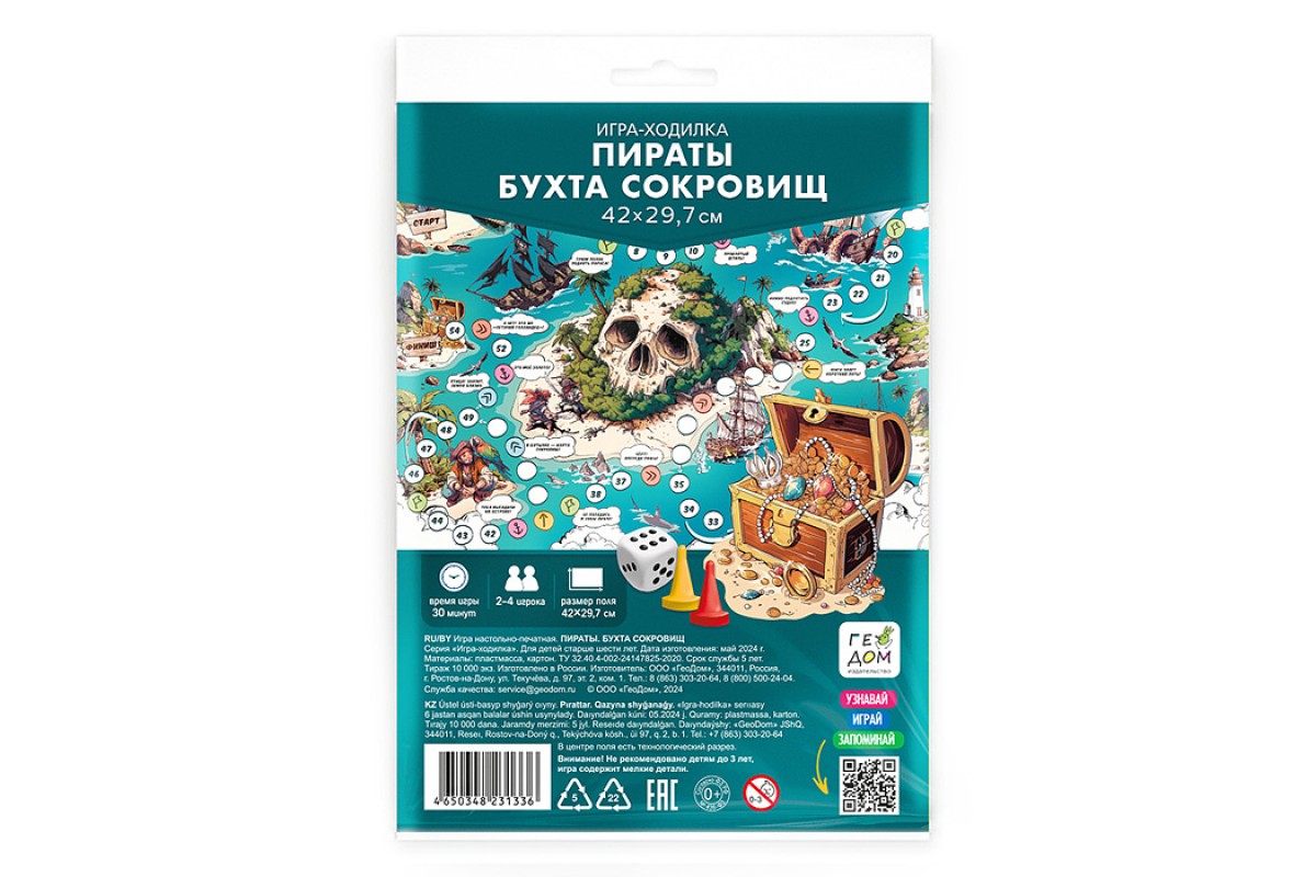 Игра-ходилка с фишками. Пираты. Бухта сокровищ. 29,7х42 см.