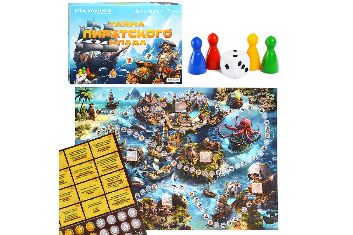 Игра-ходилка в коробке с карточками. Тайна пиратского клада