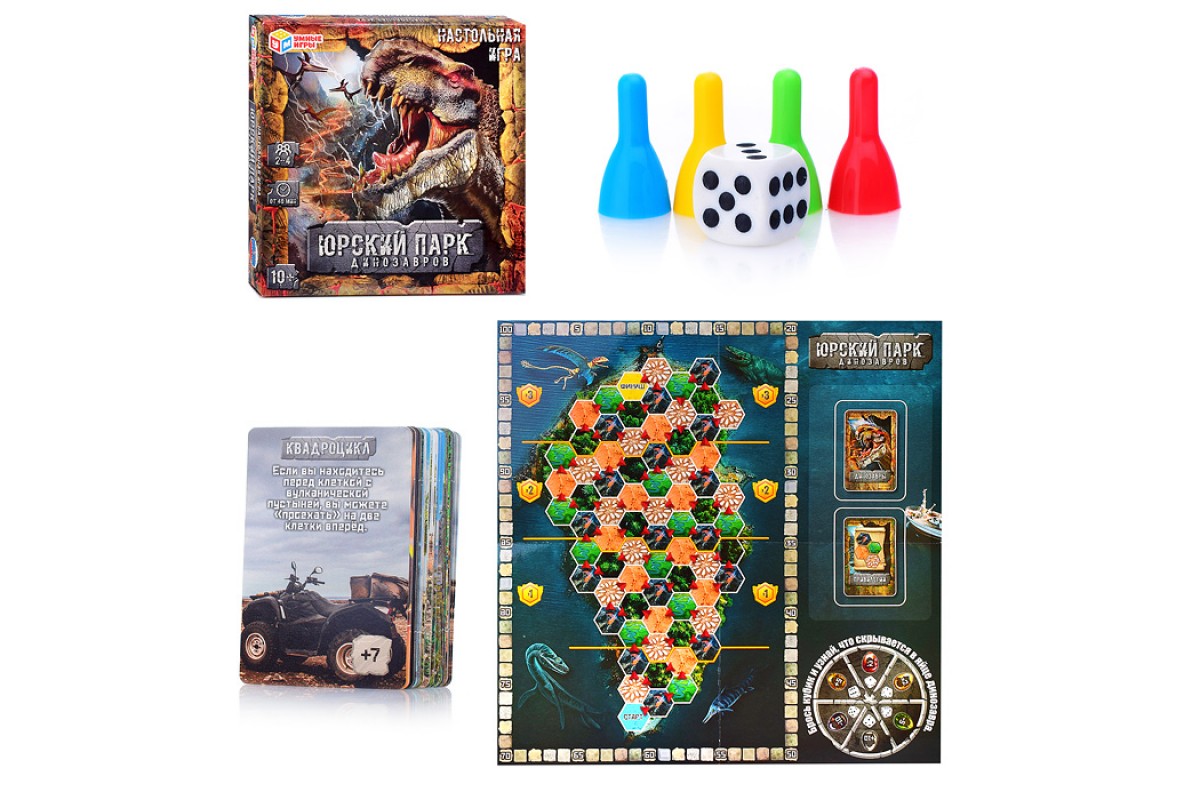 Настольная игра-ходилка квадрат.40 карточек. Юрский парк динозавров.