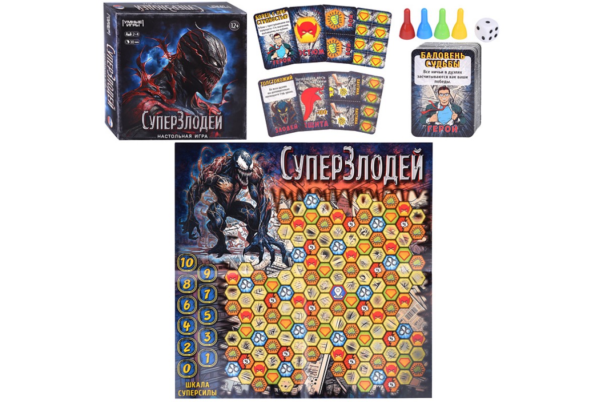 Настольная игра-ходилка квадрат. Суперзлодей. 40 карточек.