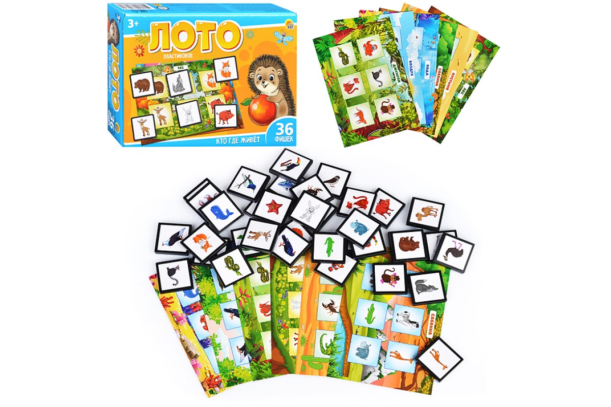Лото пластмассовое 36 фишек. "Кто где живет"