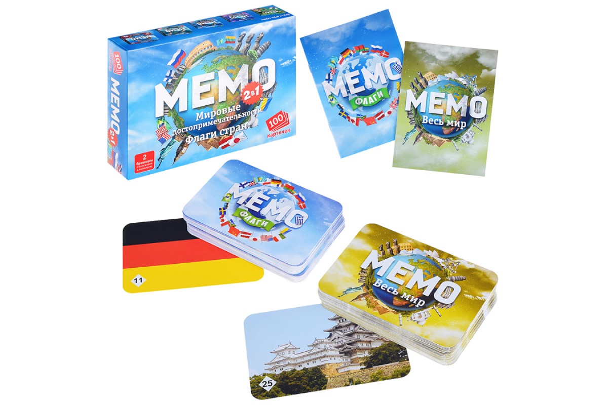 Мемо 2 в 1 "Мировые достопримечательности и Флаги стран"