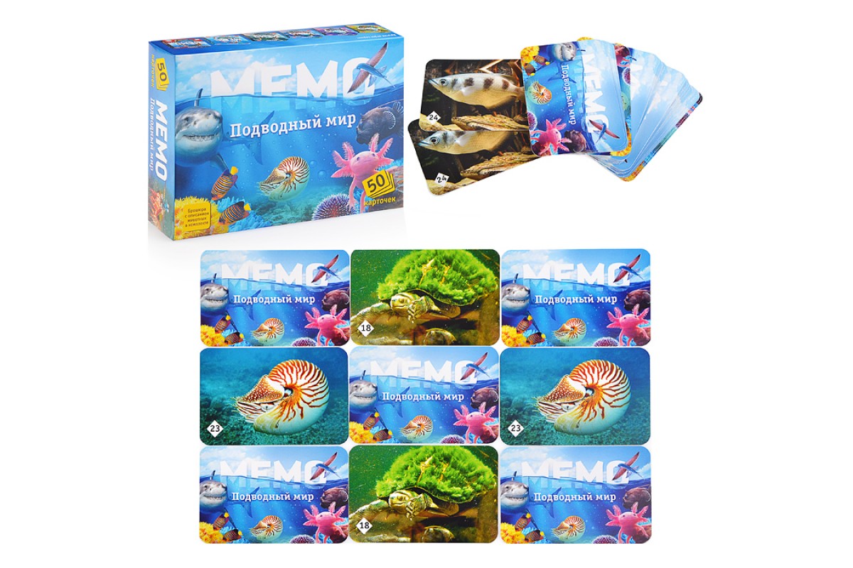 - 50 карточек с изображениями обитателей подводного мира.