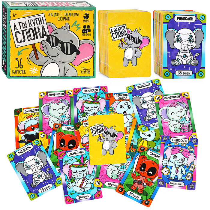 Игра настольная "А ты купи Слона" Аукцион с забавными слонами Актив time