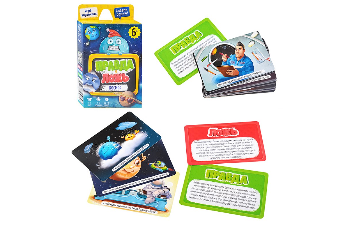 Игра карточная. Серия Правда-ложь. Космос. 60 карточек. 8х12 см