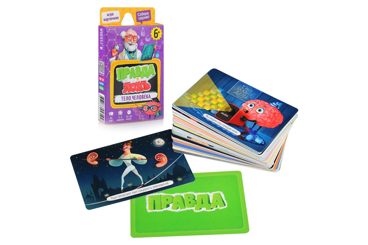 Игра карточная. Серия Правда-ложь. Тело человека. 60 карточек. 8х12 см
