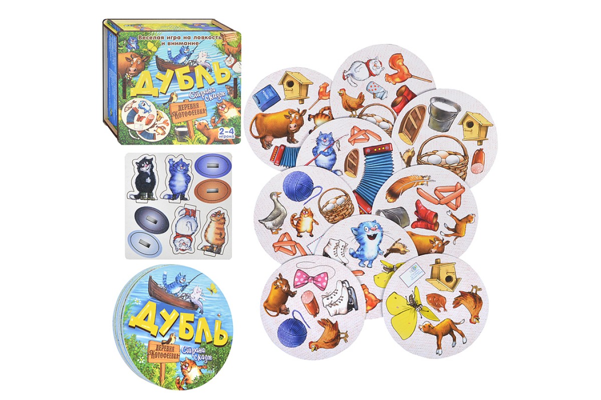 Настольная игра "Дубль Страна сказок. Деревня Котофеевка" (дерево) (Синие коты худ..Зенюк)