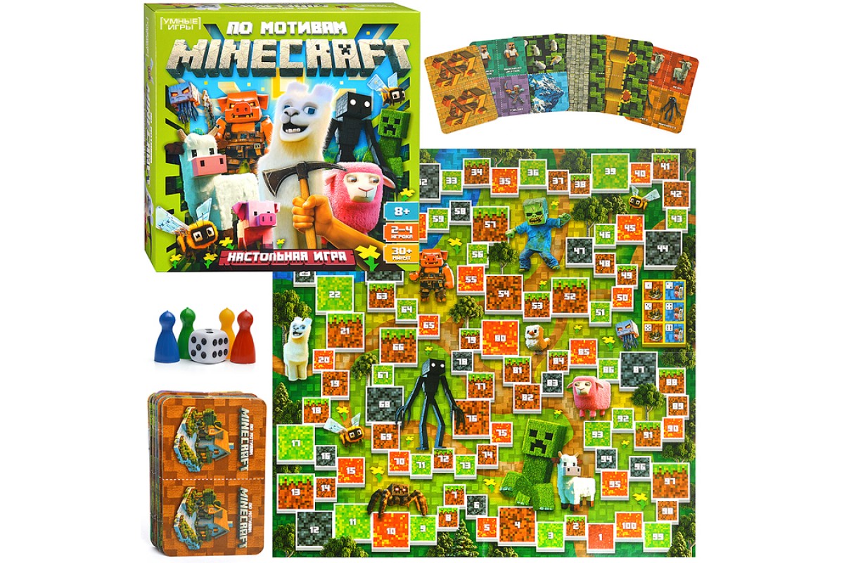 Настольная игра-квадрат "По мотивам Minecraft" 40 карточек.