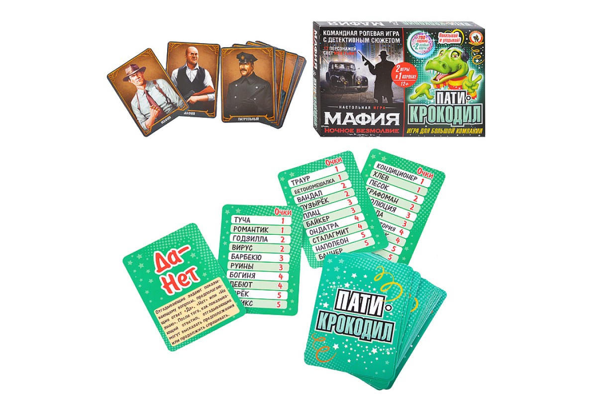 Настольная игра "Мафия" Ночное безмолвие +Пати-крокодил 2 в 1