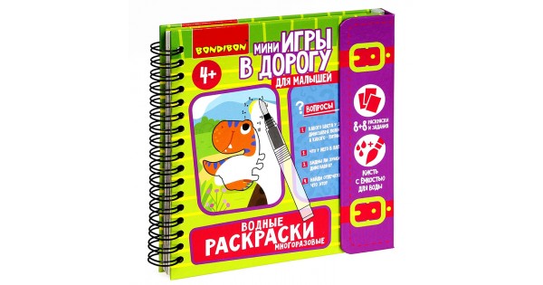 Мини-игры в дорогу для малышей "Водные раскраски" 5, многоразовые с кистью