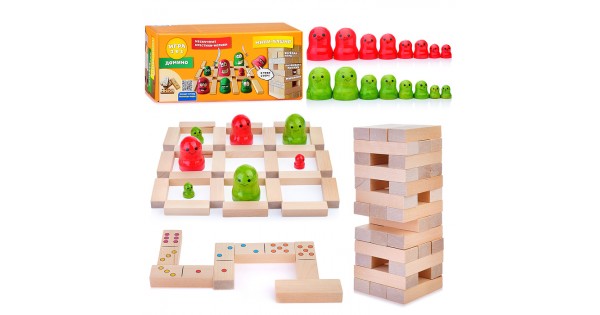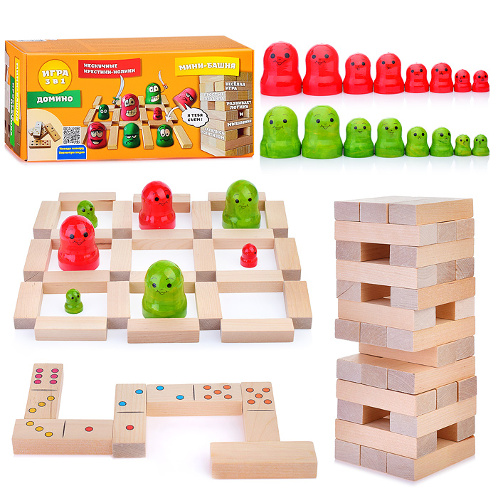 Набор игр 3 в 1 "Нескучные Крестики-нолики, Мини-башня, Домино"