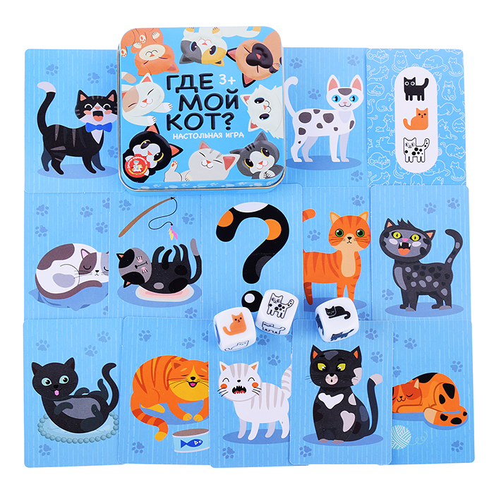 Игра настольная "Пластиковые кубики. Где мой кот?" (жестяная коробочка)