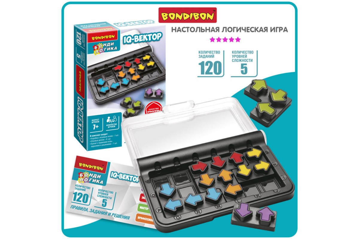Внимание! Когда Вы поворачиваете деталь головоломки, направление стрелок меняется. IQ-ВЕКТОР – это уникальная игра для путешествий со 120 заданиями разных уровней сложности.