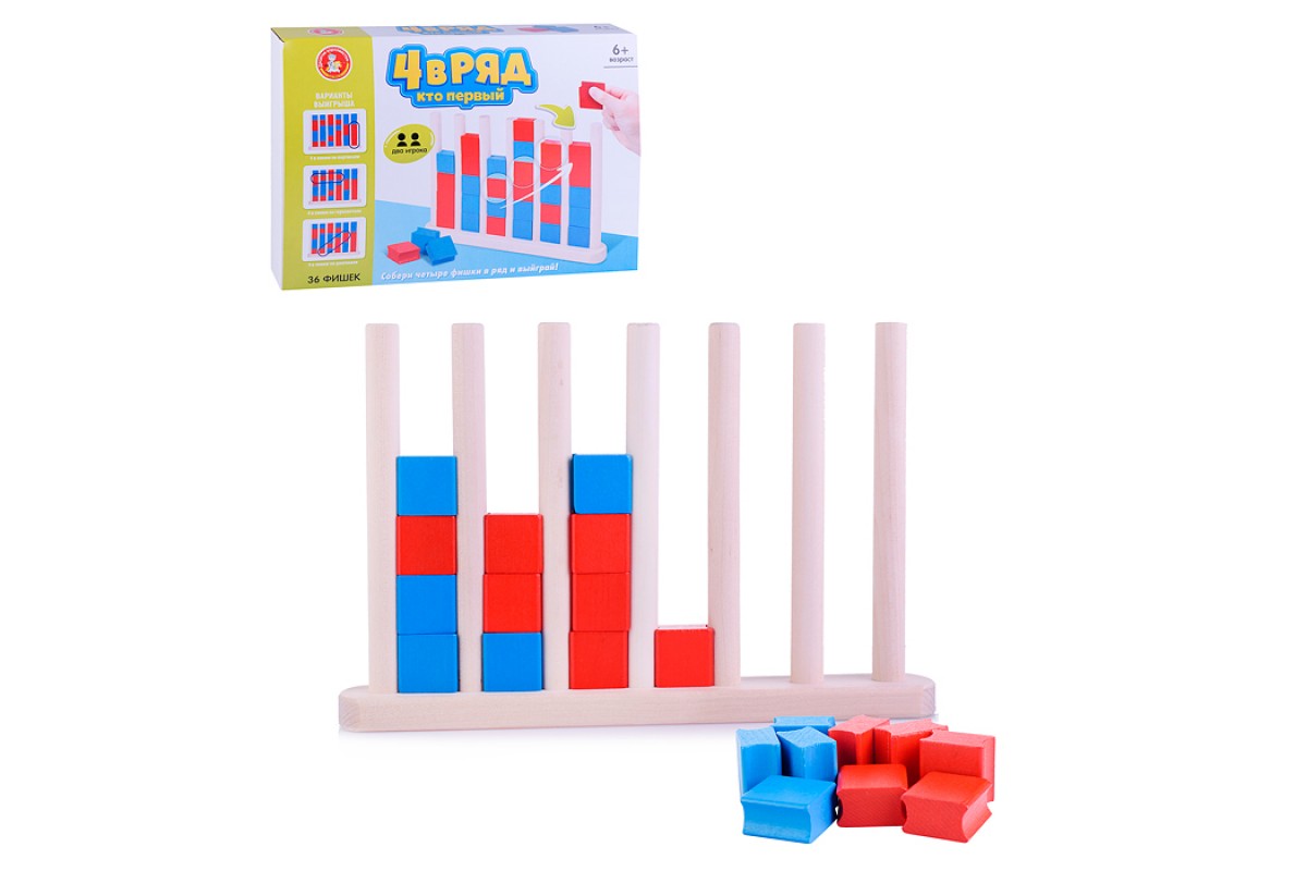 Настольная игра «4 в ряд. Кто первый» развивает счётные навыки, логику, сообразительность, внимательность, пространственное мышление и мелкую моторику.