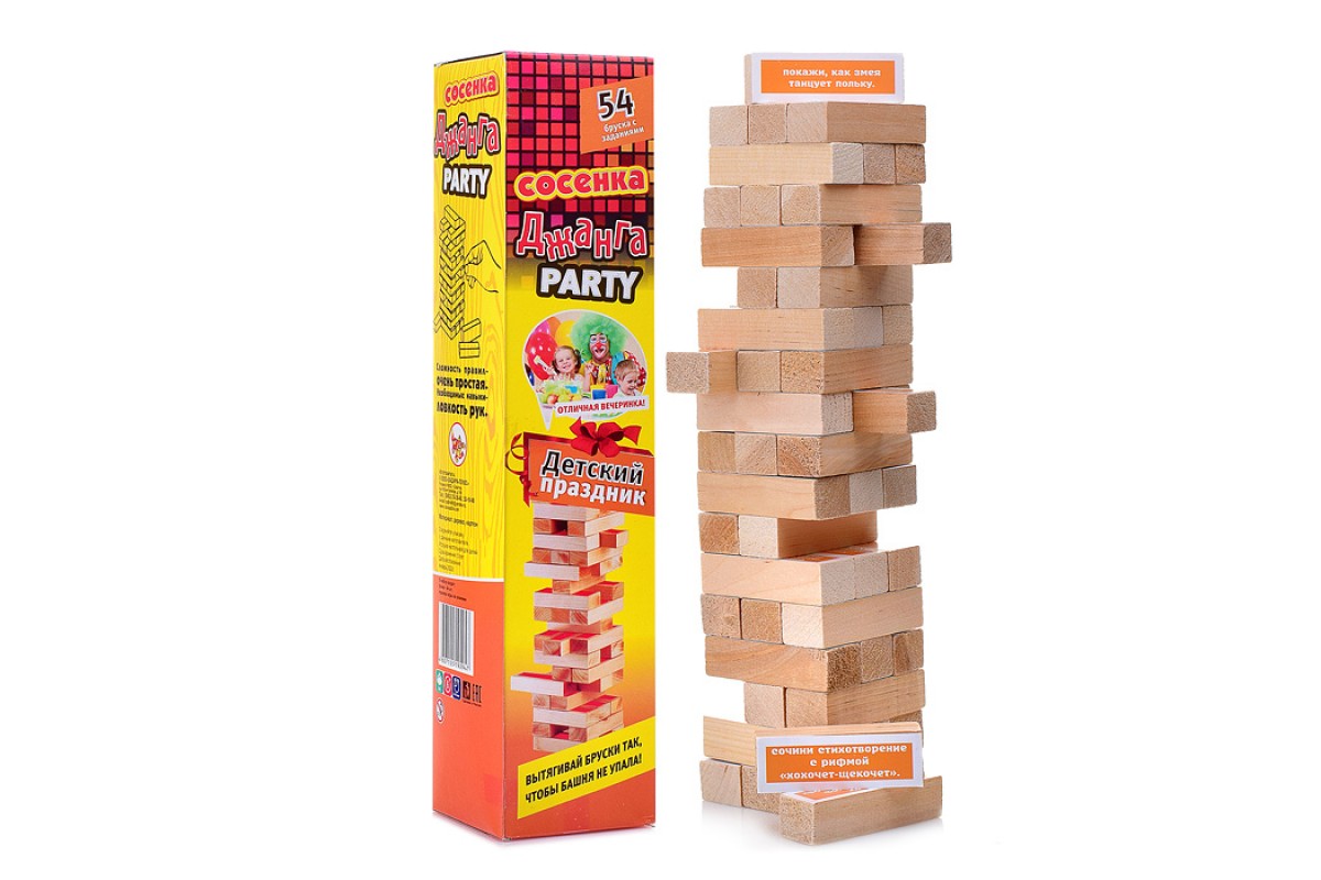 Настольная игра "Джанга PARTY (Сосенка) "Детский праздник" (большая из натурульного дерева)