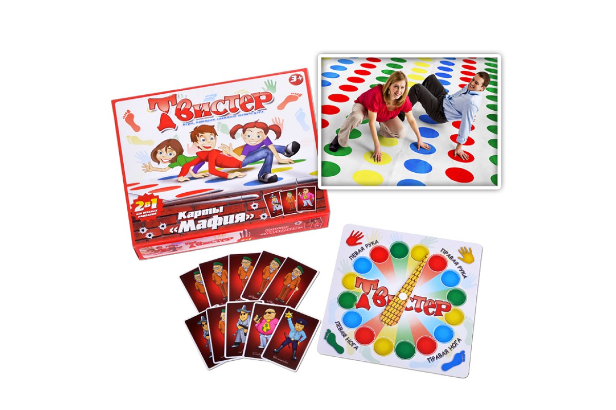 • В набор входят 2 популярные захватывающие игры "Твистер" и "Мафия", в которые будет интересно играть и детям и увлеченным взрослым.