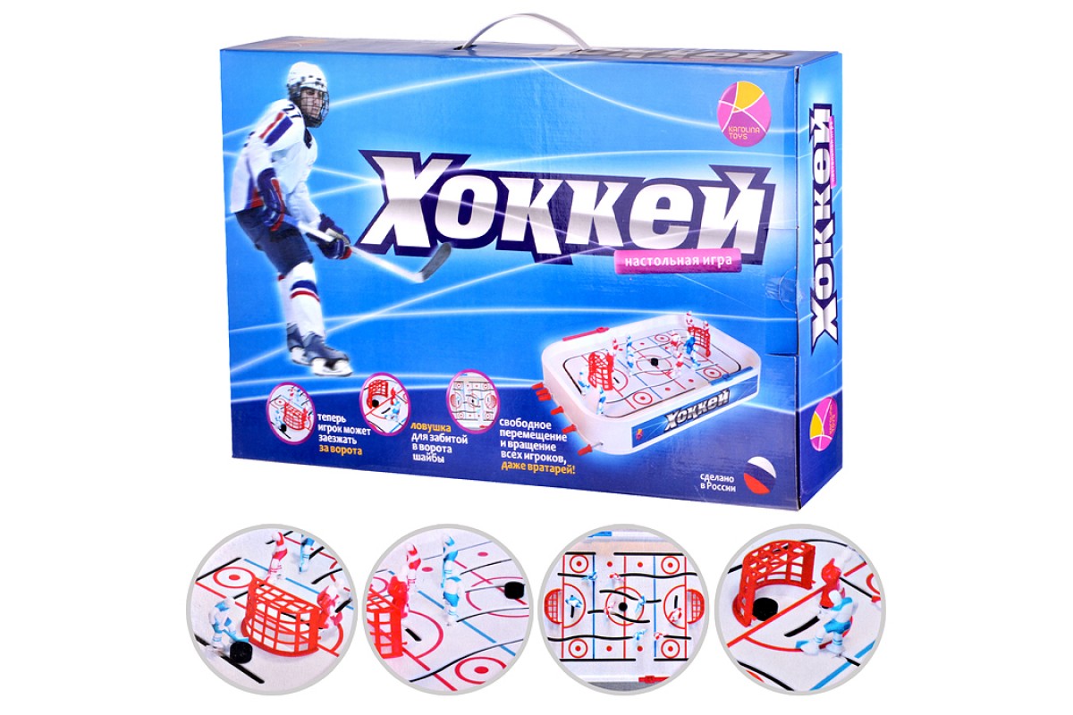 Комплект: игровое поле, 10 игроков, 2 вратаря, шайба.