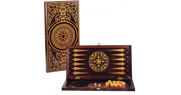 Нарды средние венге, рисунок золото "Круговой орнамент" (480*240*40)