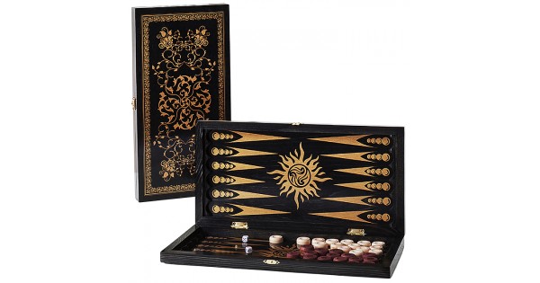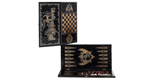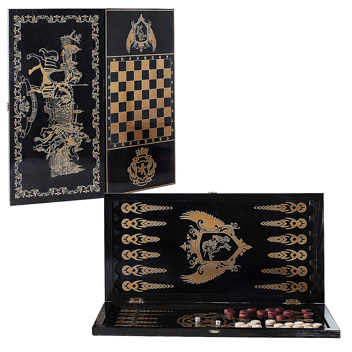 Игра 2в1 большая черная, рисунок золото (нарды, шашки) "Рыцари" (600*300*40)