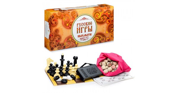Набор "Русские игры" (шахматы, шашки, лото (бочонок из древопласта), доска из микрогофры)