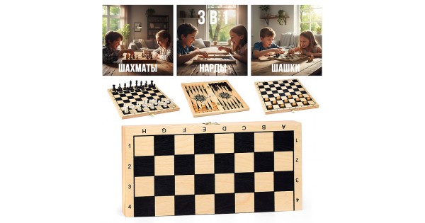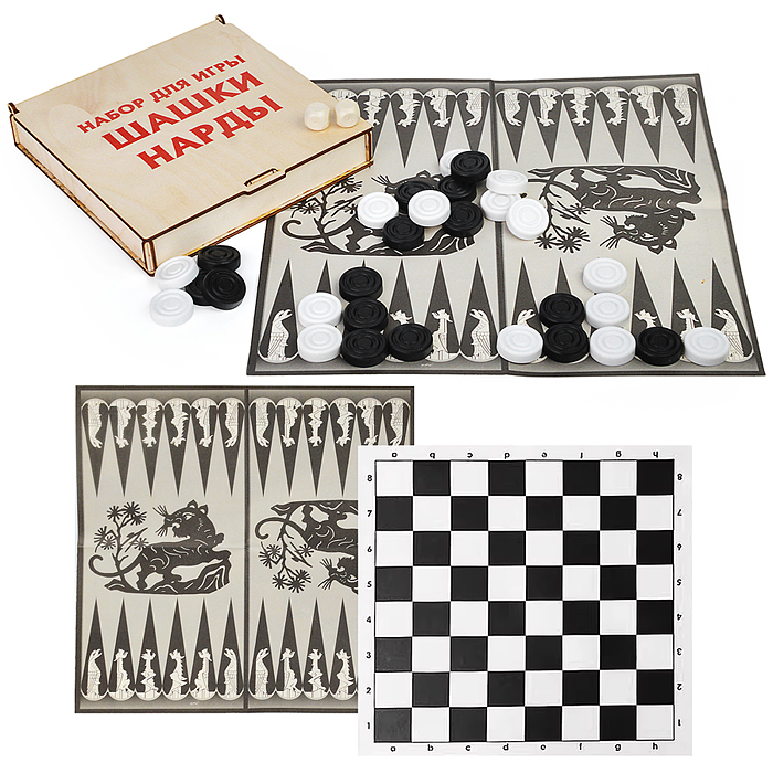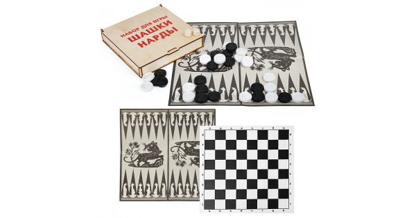 Игра 3в1 малая с походными пластмассовыми шахматами "Объедовские" (нарды, шахматы, шашки "Классика" (400*200*40))