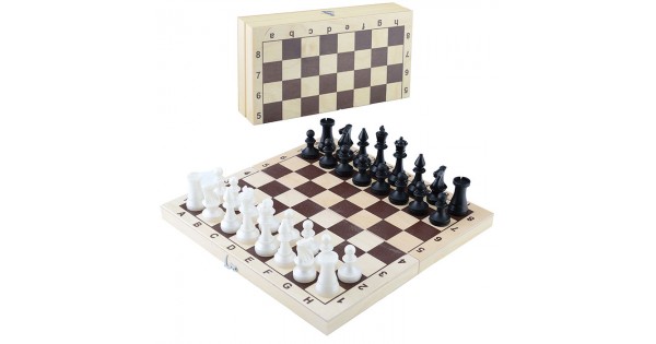 Шахматы гроссмейстерские пластиков с деревянной доской 415*215 (фигуры пластик) высота короля 105мм, пешки 50мм.