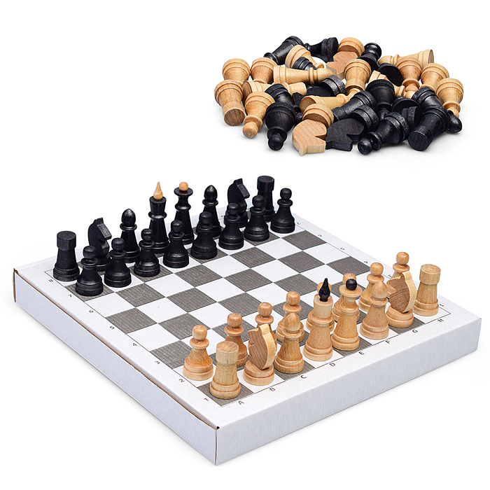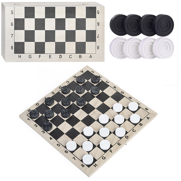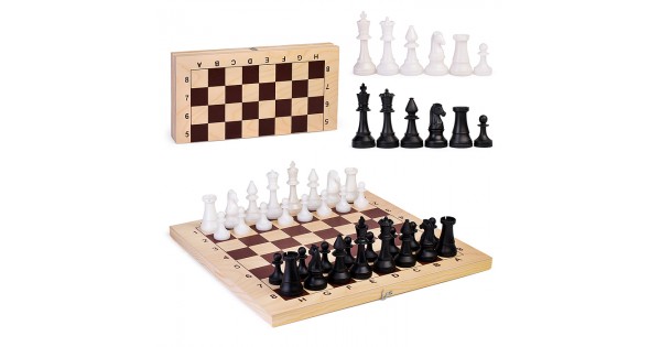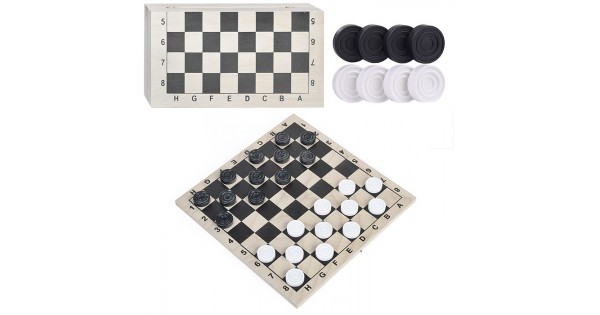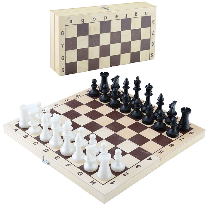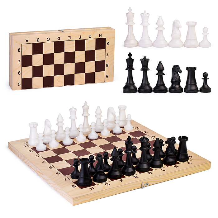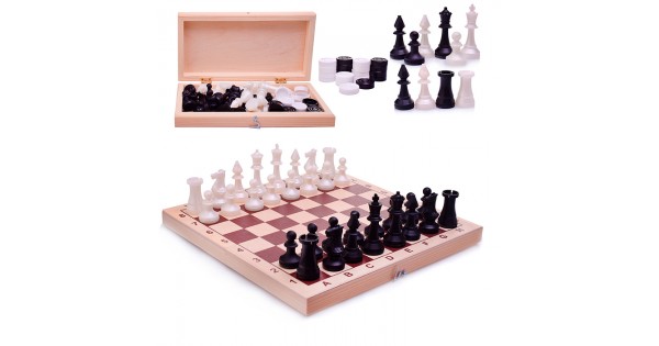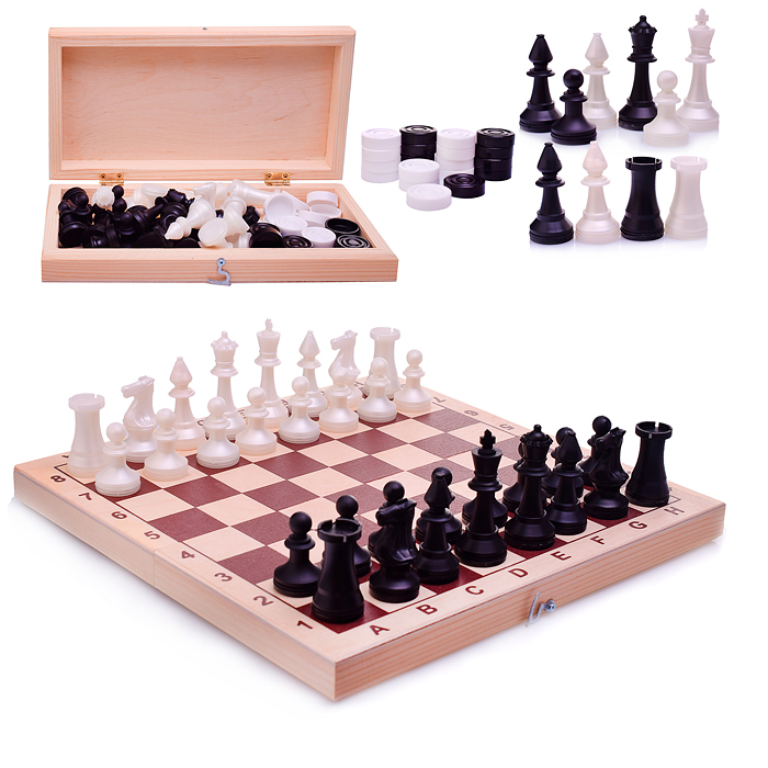 Шахматы обиходные пластиковые + шашки пластиковые, в деревянной доске 290х145мм