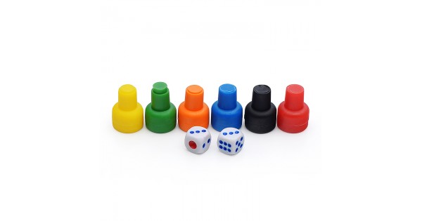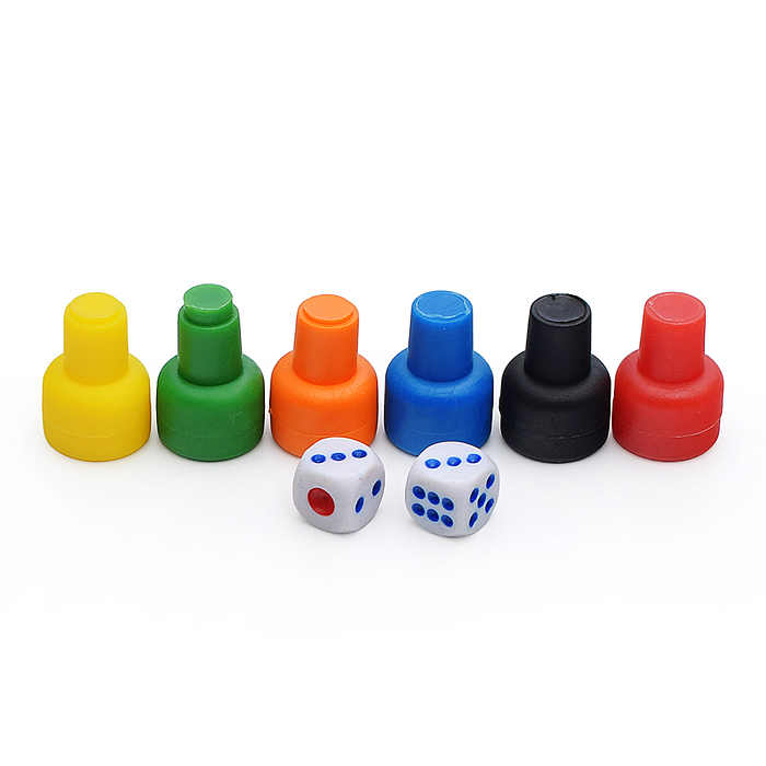 Набор фишек (полнотелые, повышенной устойчивасти, пластиковые) для настольных игр с зариками (6 фишек+2 зарика)