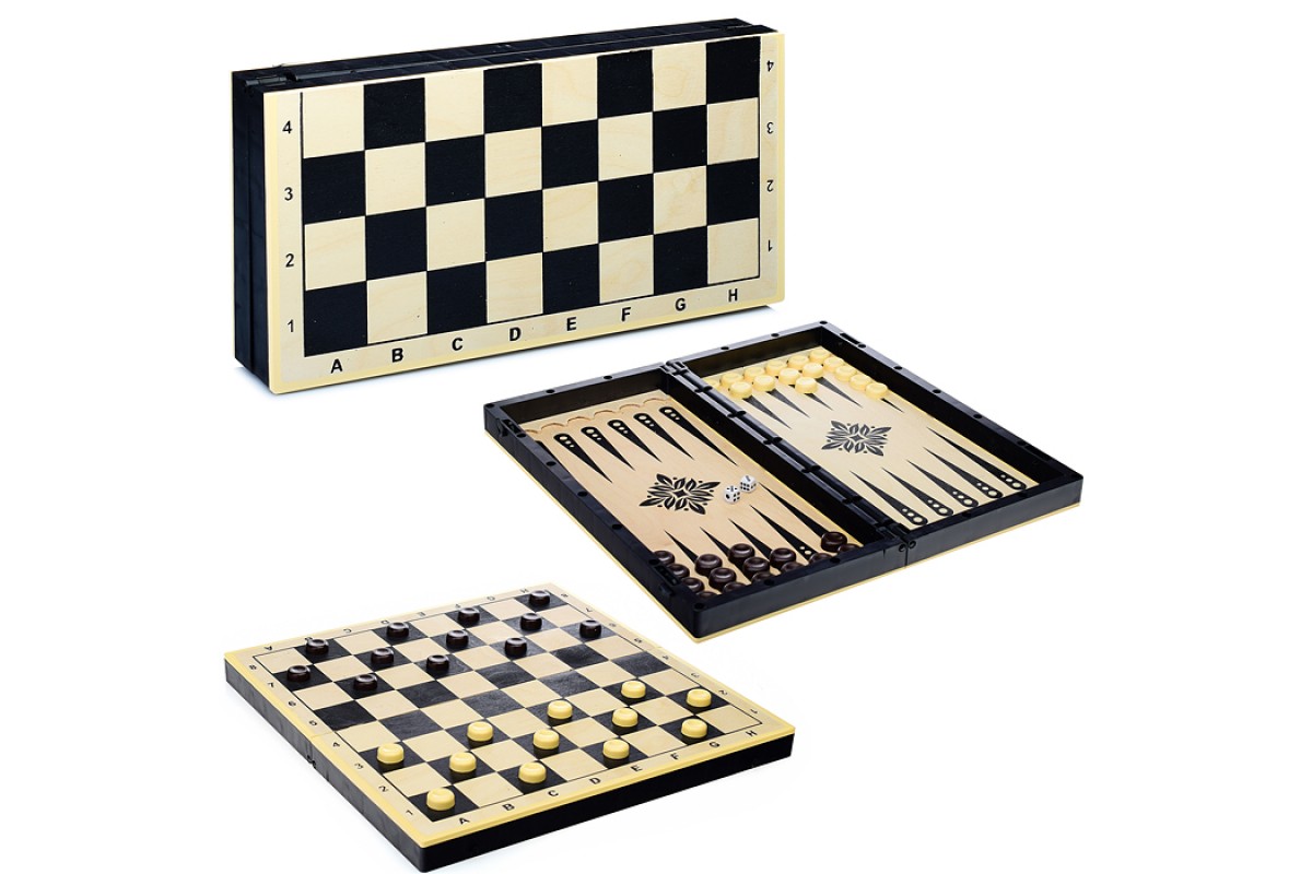 Игра 2 в 1 (Шашки, нарды, доска дерево+пластик)