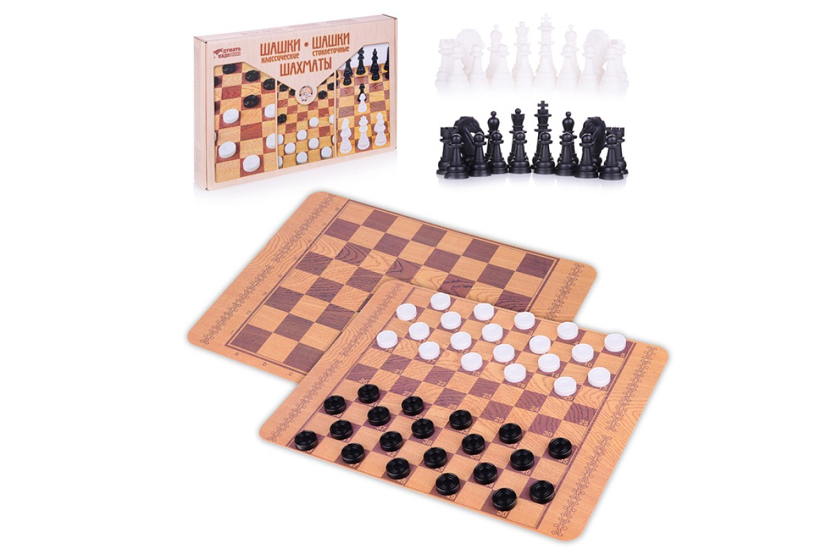 Игра настольная "Шашки классические, Шашки стоклеточные, Шахматы" (большие)