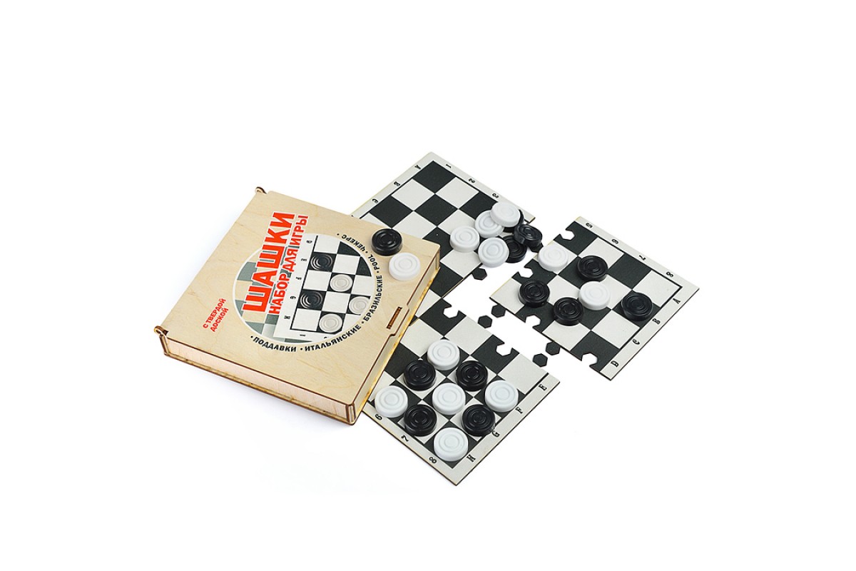 Игра "Шашки" (с жестким полем, деревянная коробка)