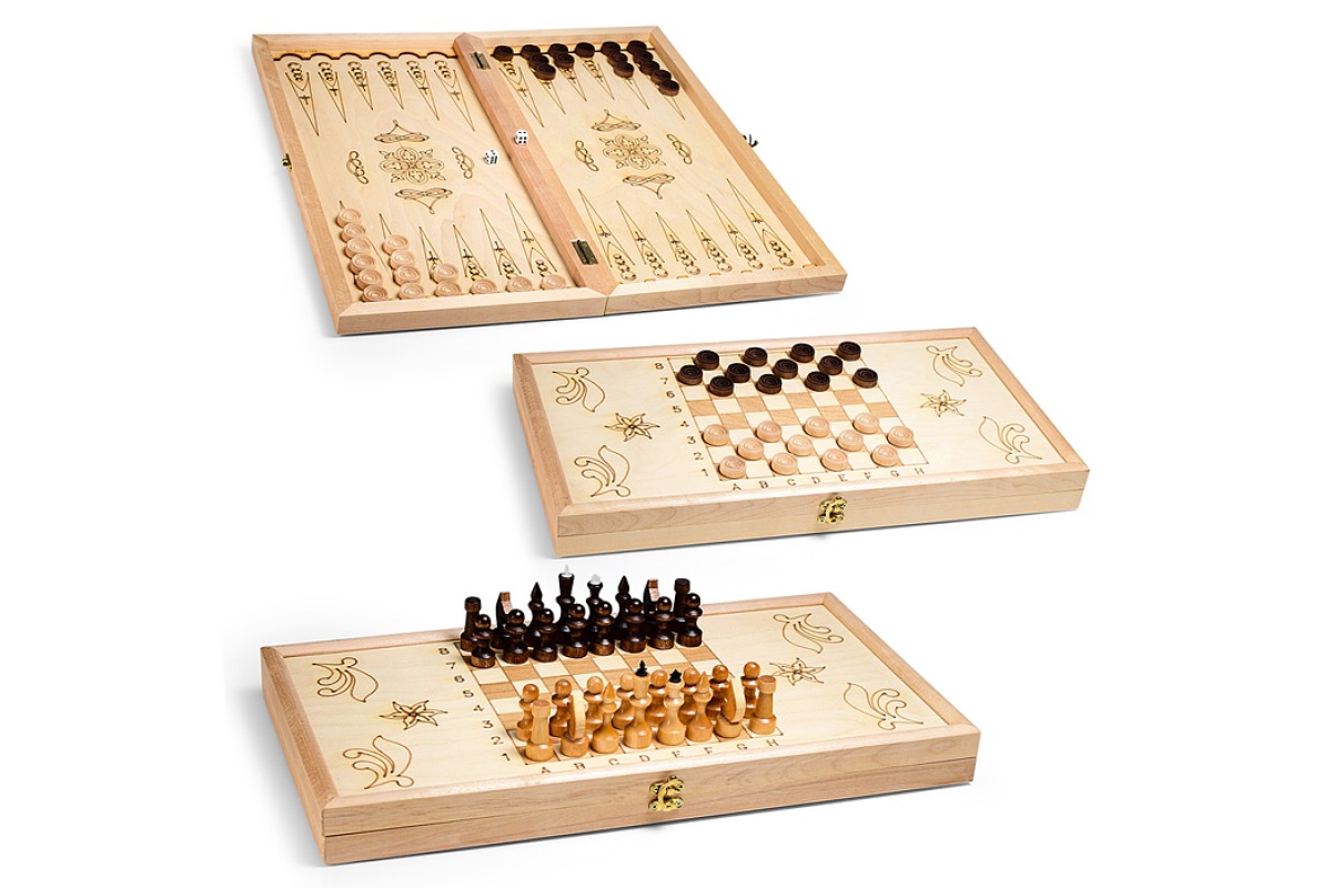Набор подарочный 3в1 (нарды средние, рисунок-выжиание, шахматы, шашки) 500х250мм