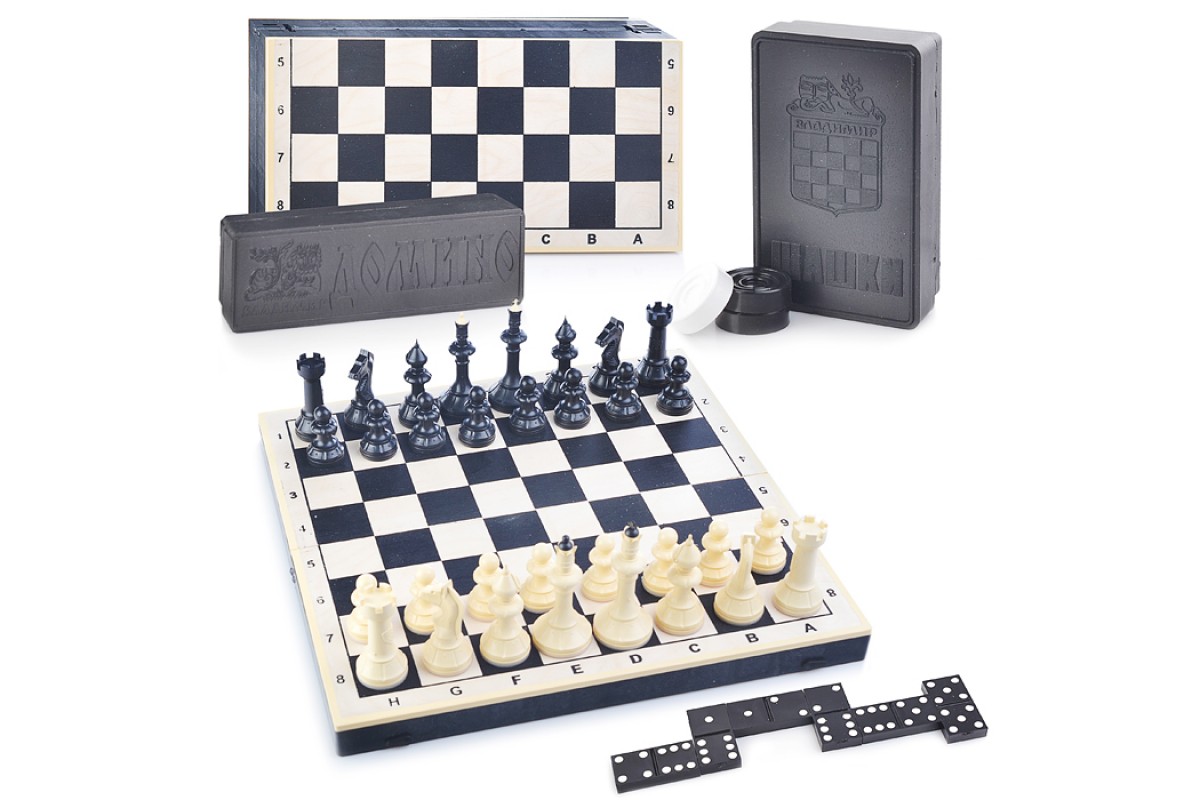 Шахматы "Айвенго" с доской (дерево+пластик 40/40 см) с шашками и домино