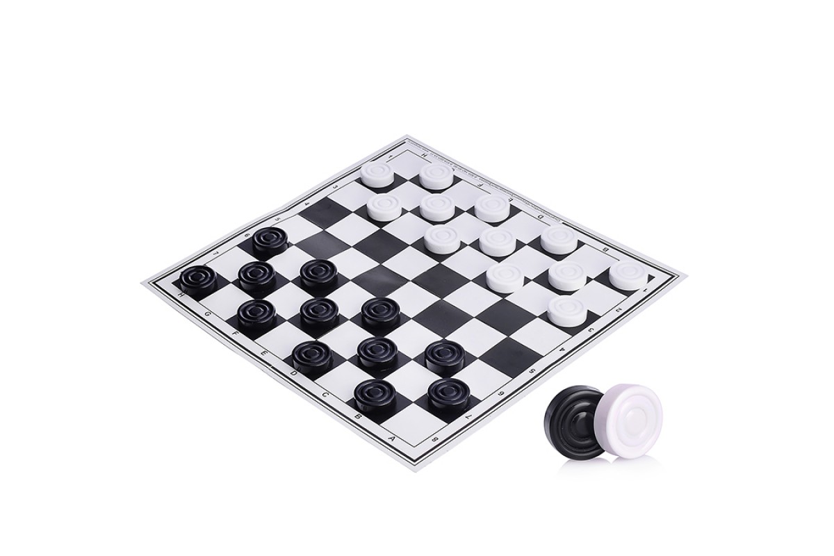 Шашки пластиковые с шахматным полем (картон) в пакете с европодвесом