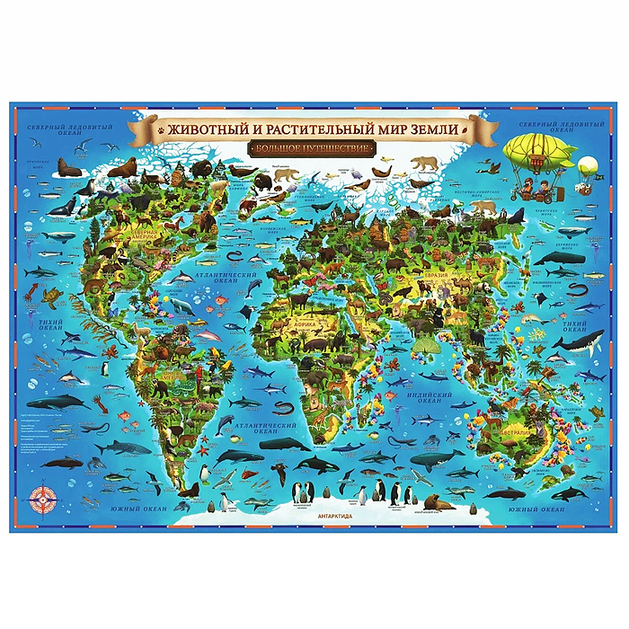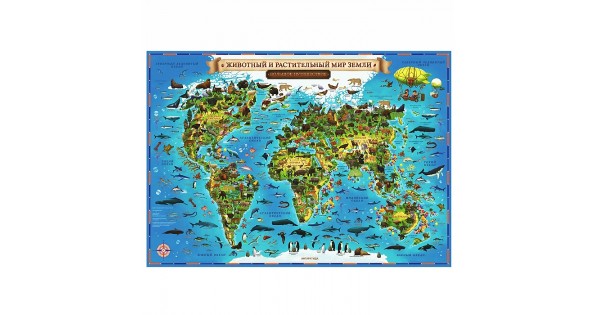Карта Мира для детей "Животный и растительный мир Земли" 101х69 на рейках (с ламинацией)