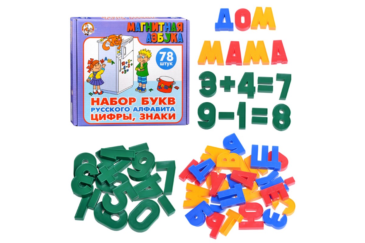 Магнитная Азбука: Набор букв русского алфавита, цифры, знаки (78)
