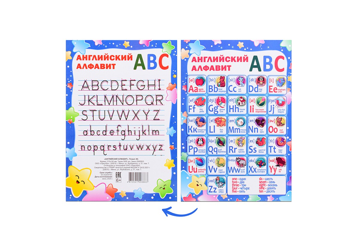 • Двухсторонний плакат с буквами английского алфавита - с одной стороны,
