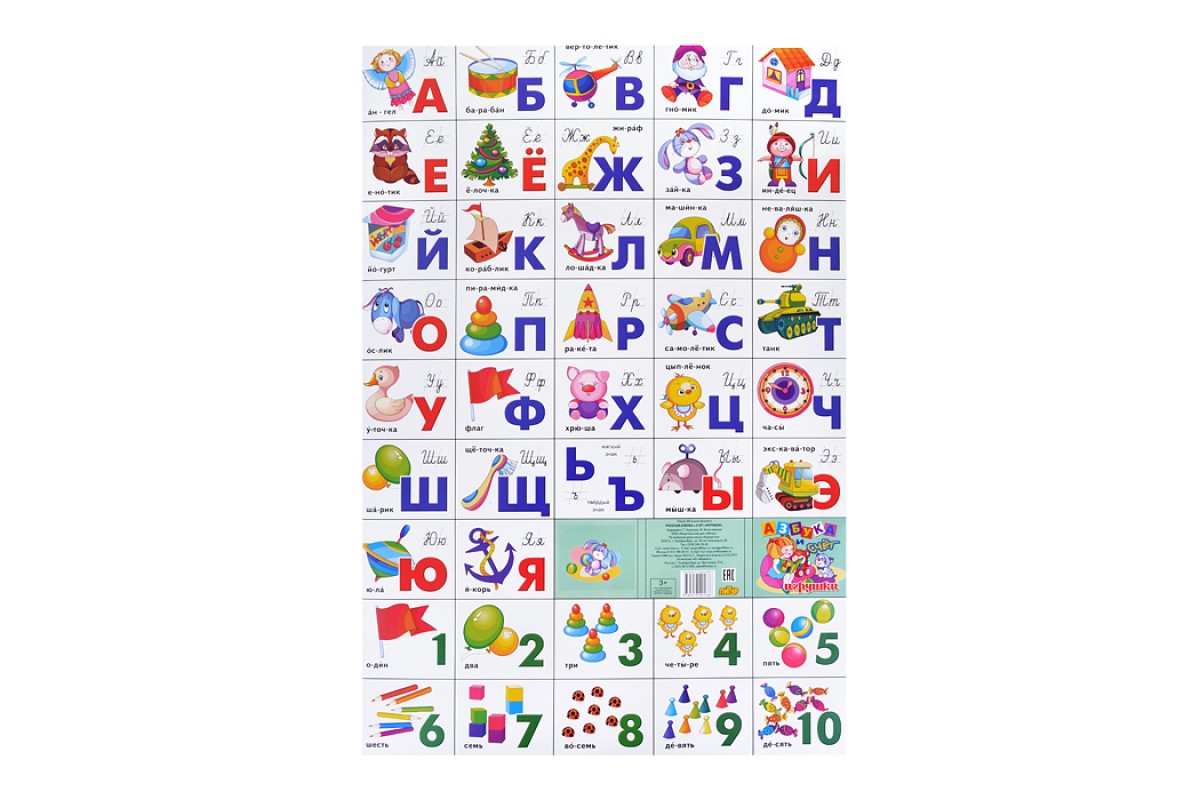 Плакат. Азбука русская разрез + счет/игрушки 530*770