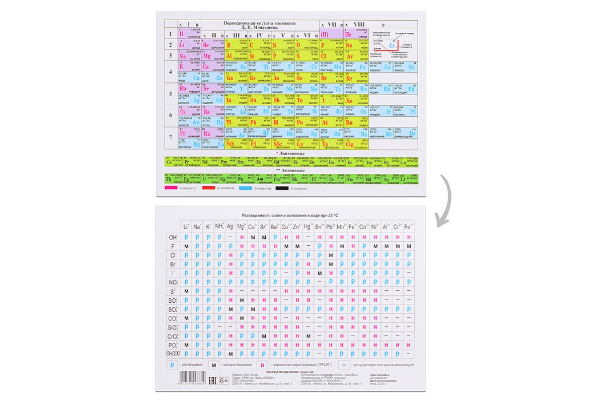 Плакат. Периодическая система Менделеева. Растворимость солей