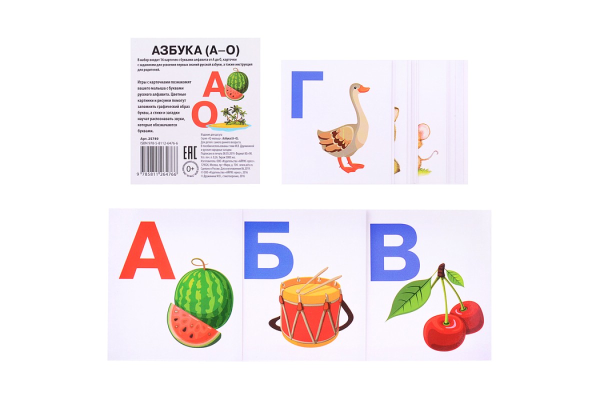 Умный малыш. Азбука (А-О). Набор карточек для детей.