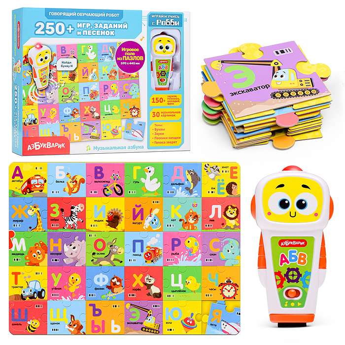 Музыкальная азбука (белый робот) Говорящий обучающий робот 250+ игр, заданий и песенок