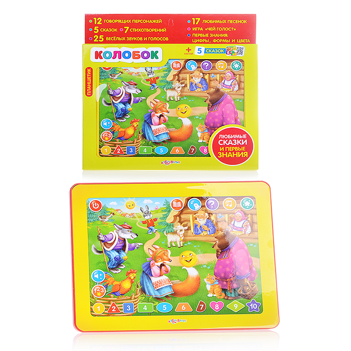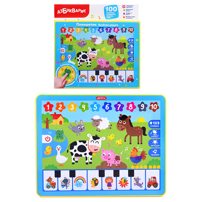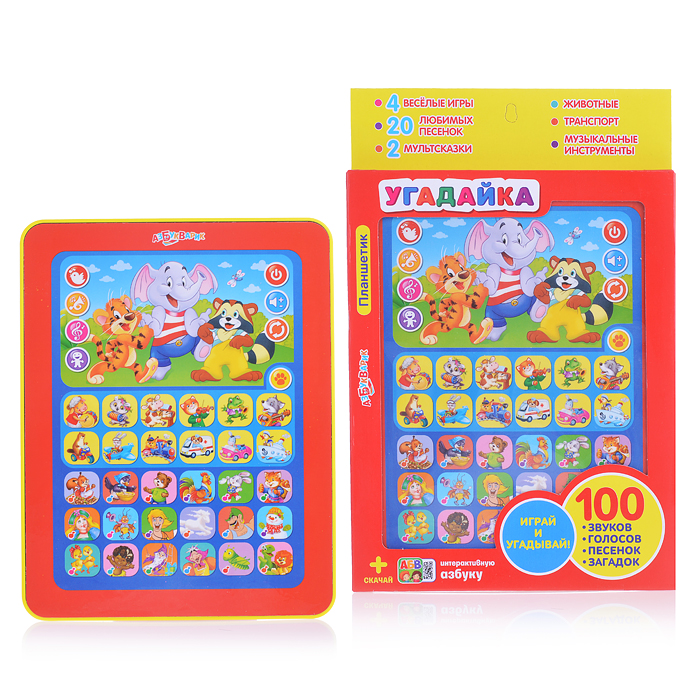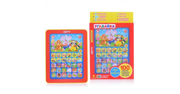 Обучающий мини-планшет 75+ мелодий, звуков и вопросов викторин на блистере