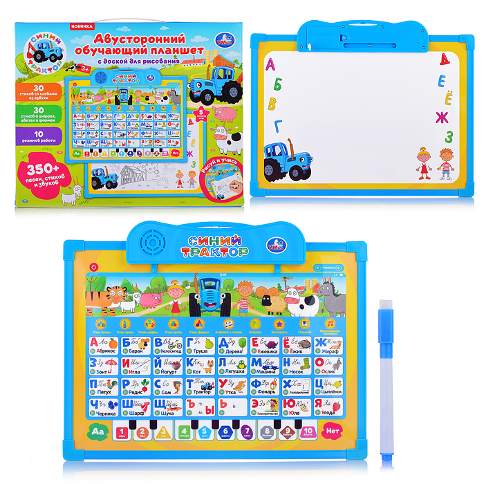 Двусторонняя доска "Синий трактор. Азбука" 2в1 (350 стихов, песен, звуков, бат.) в коробке