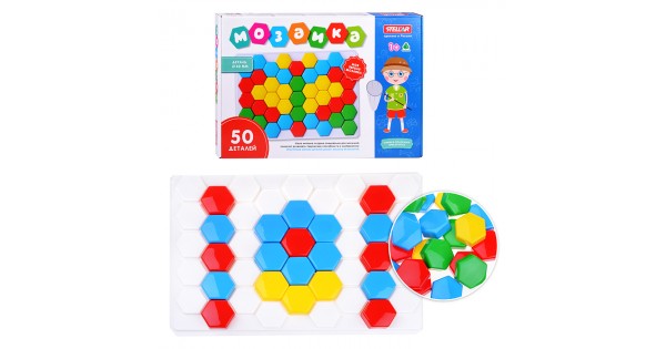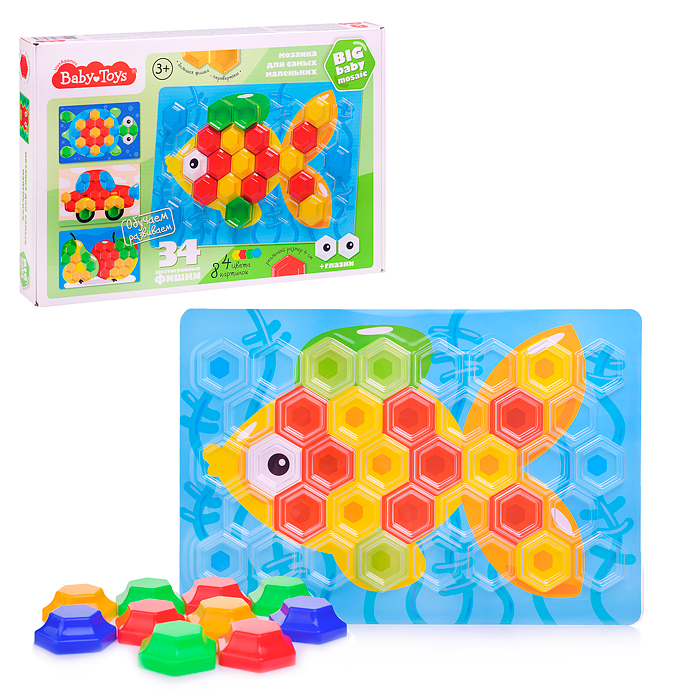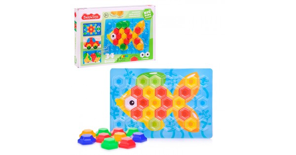 Мозаика объемная "Рыбка" 34 шестигранных фишки ( 4 цвета , 8 картинок )