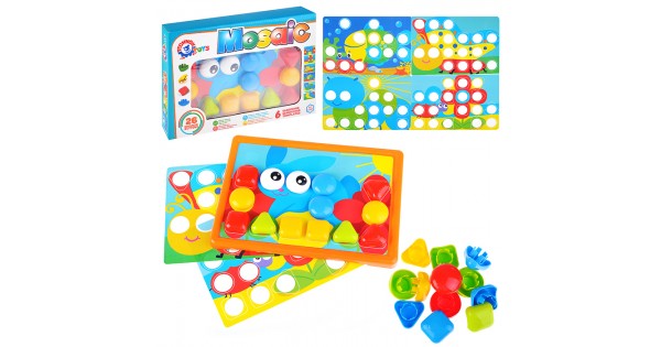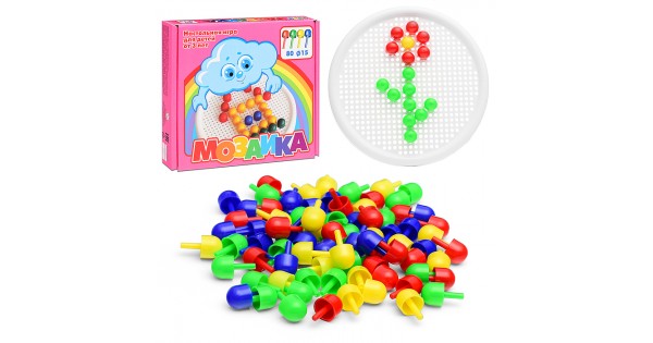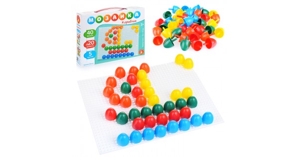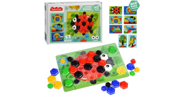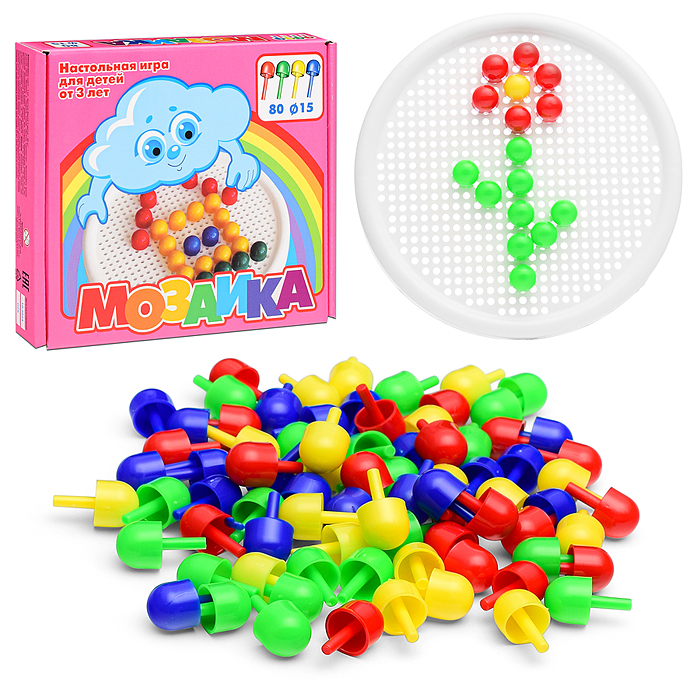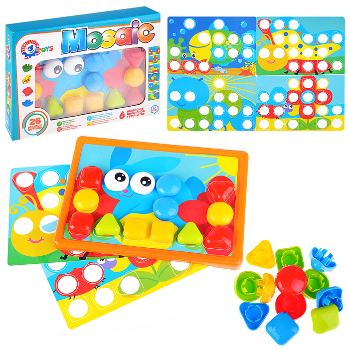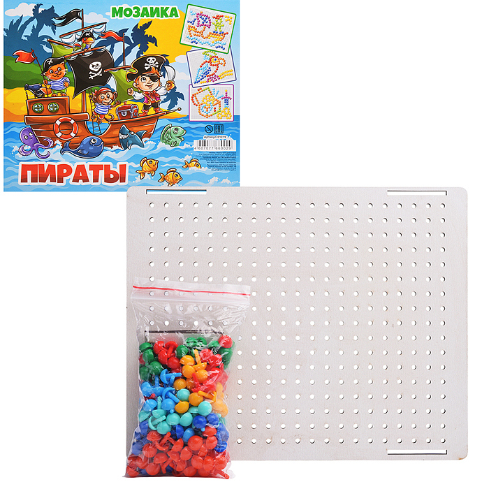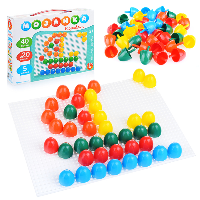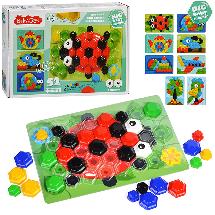 Мозаика для самых маленьких (39 фишек, 6 цветов, 8 картинок, смайлик в подарок)